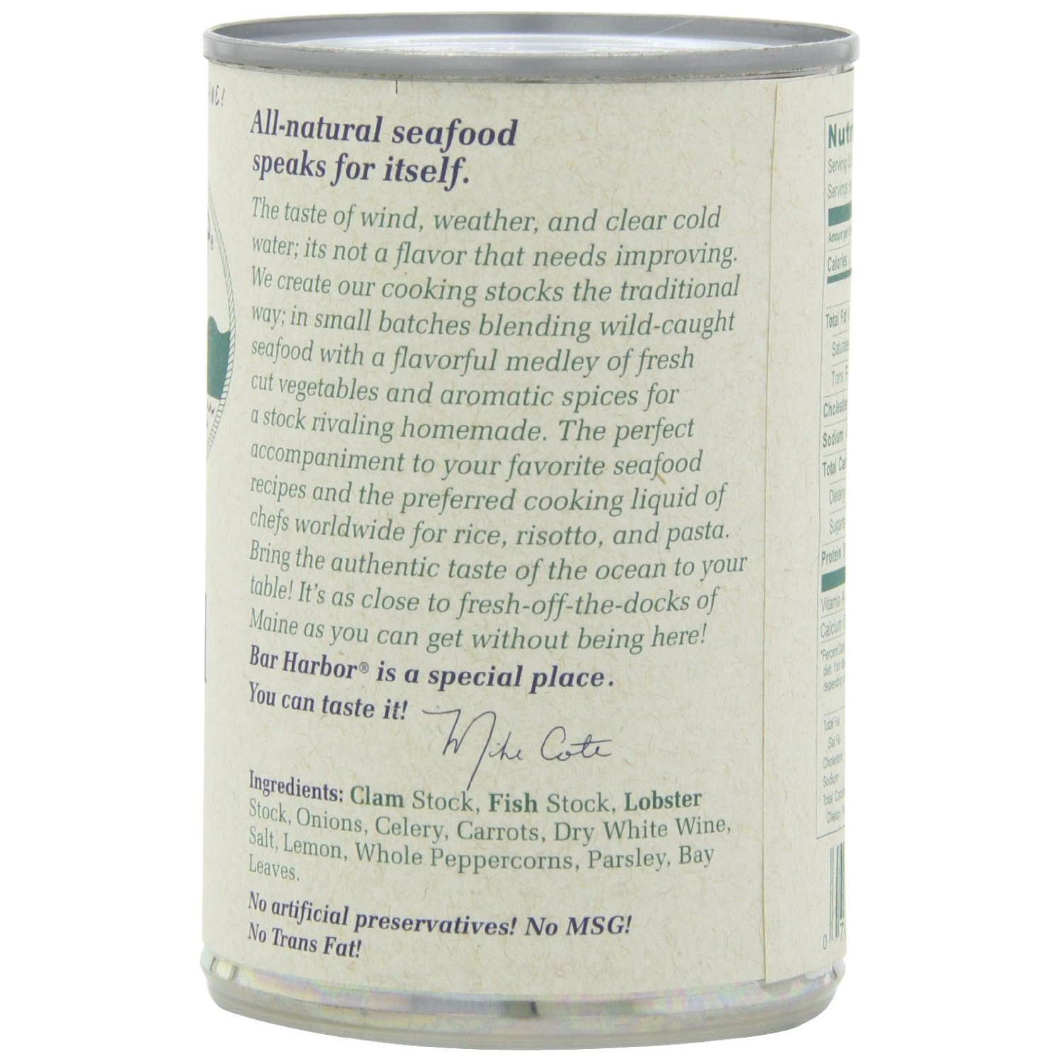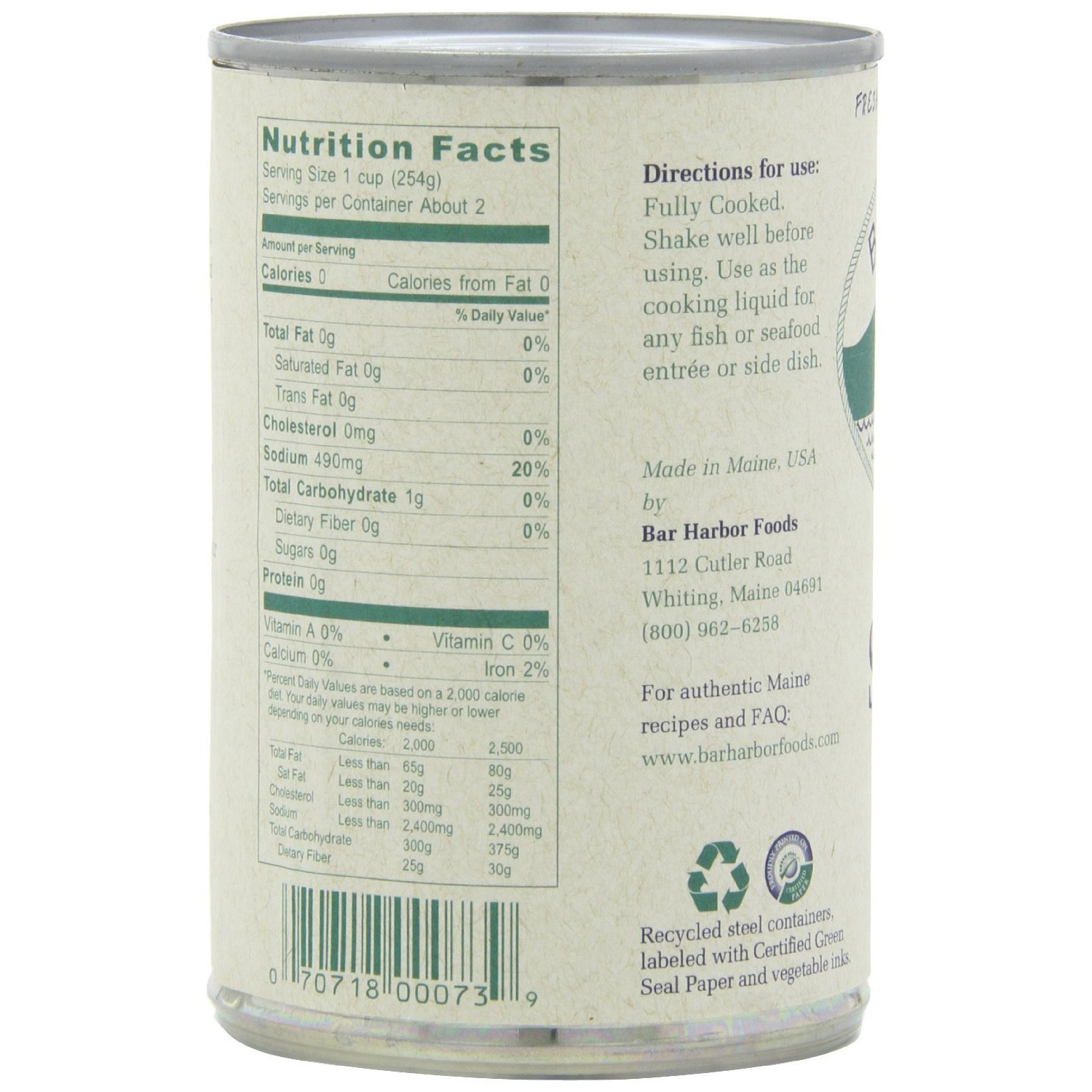 Clam Stock, Certified Maine Lobster Stock, Wild-caught Fish Stock, Onion, Celery, Carrots, Dry White Wine, Bay Leaves, Salt, Whole Peppercorns, Garlic, Parsley.
