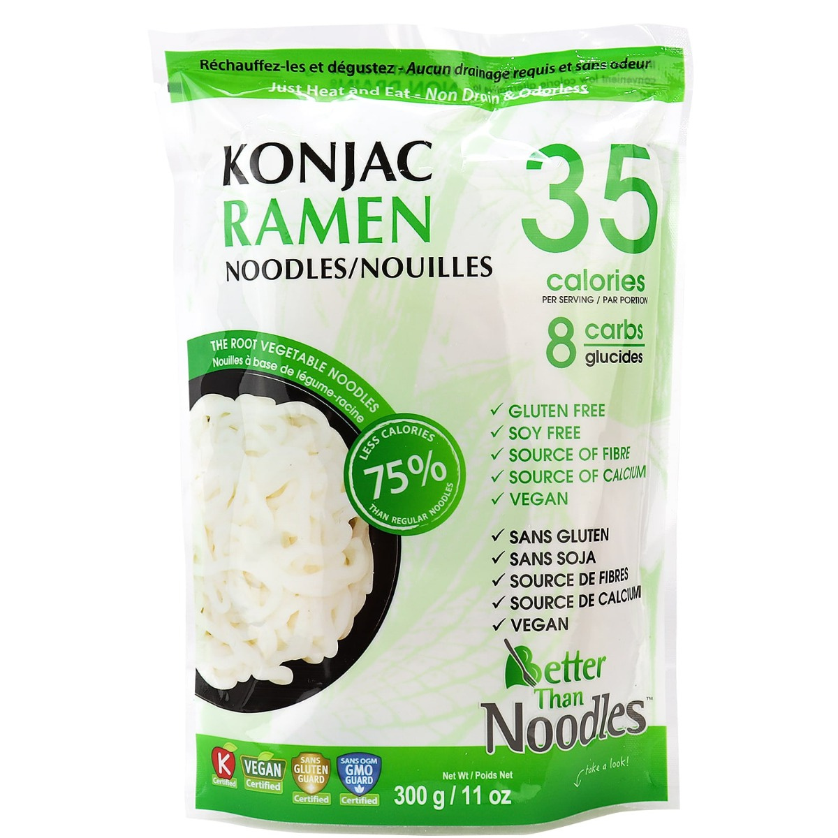 Ramen Noodles just got better with Better Than Foods Konjac Ramen Noodles! High in fibre, and low in carbs and calories, Better Than Foods Konjac Ramen Noodles are the best of the best. Neutral in flavour and conveniently ready in 1 minute, you can fully customize your Ramen and enjoy it guilt-free. At only 35 calories per serving, you’ll definitely be reaching for a second serving of these vegan and gluten-free ramen noodles.