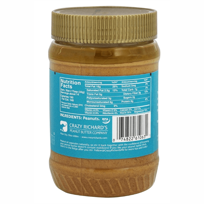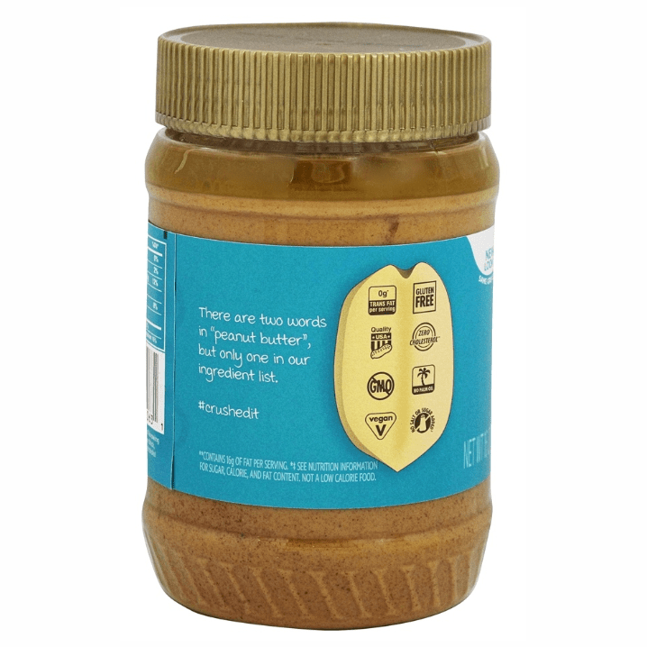 Only one ingredient: Dry Roasted and Ground to Perfection Peanuts. Our Peanut Butter only contains the best tasting peanuts to pack the biggest punch of peanut flavor.