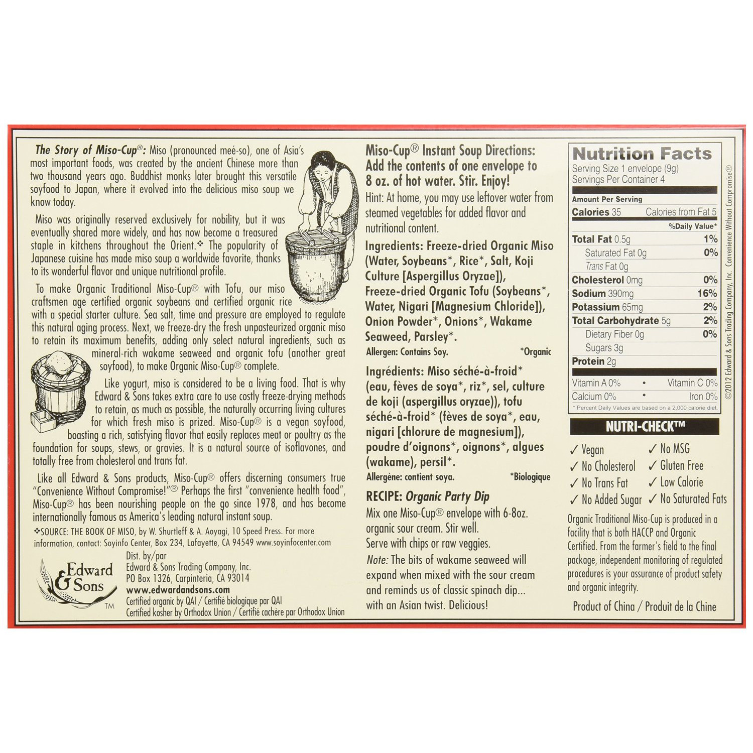 Edward & Sons Organic Traditional Miso-Cup, 4 Single Servings