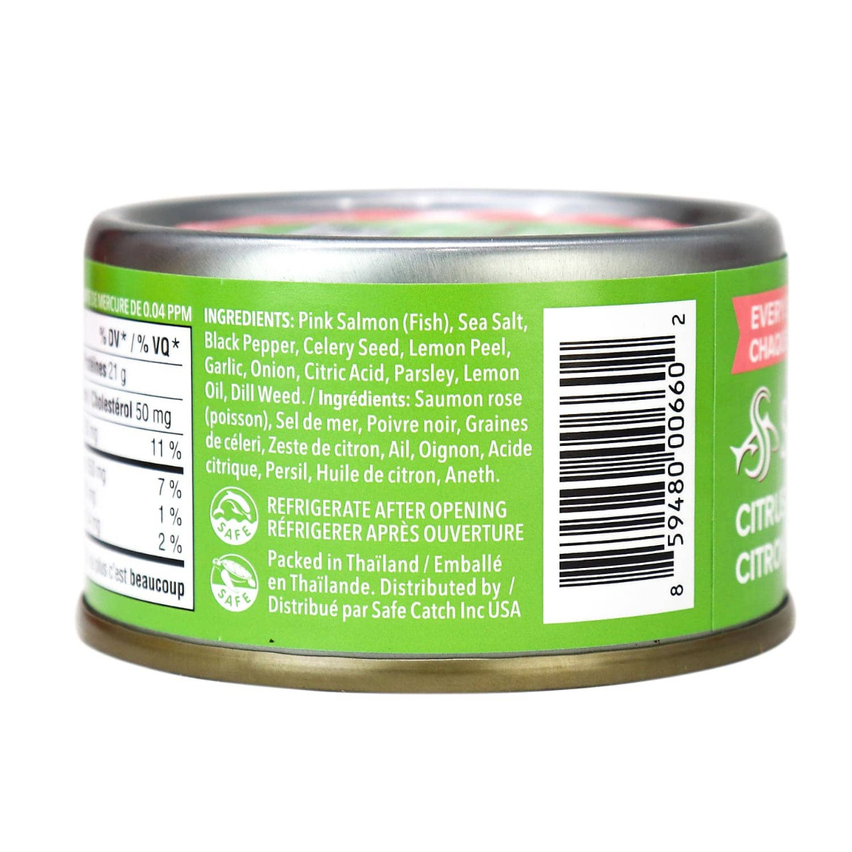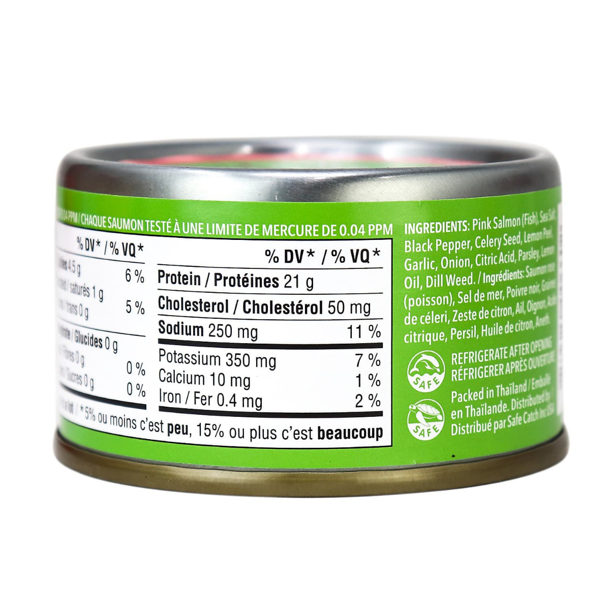 The lowest mercury limit of any salmon brand. It’s a great choice for athletes, kids & pregnant women! Seasoned with lemon and dill.