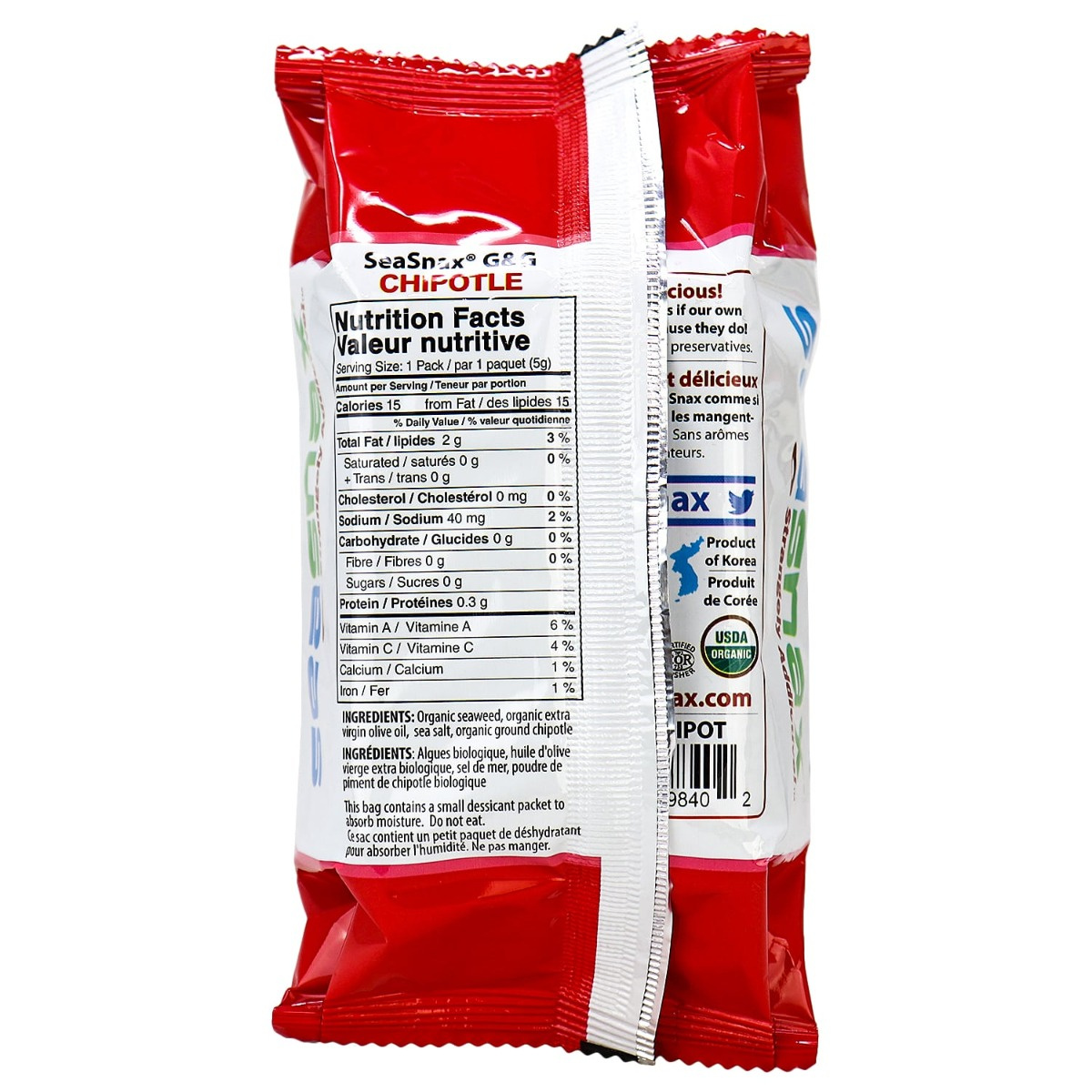 SeaSnax is an award winning premium roasted seaweed snack for the entire family, We begin with sustainably-grown organic seaweed and roast it to perfection with just a touch of organic extra virgin olive oil, organic chipotle and a pinch of sea salt.