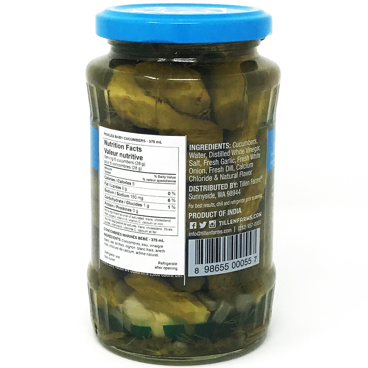 Tillen Farms Pickled Baby Cucumbers (also known as Cornichons) may look like pickles, but they are not. Instead they are a species of cucumbers that produces a smaller fruit. Hand-picked and hand-packed at one to two inches in length, they are perfectly pickled with fresh onions and fresh garlic, and are incredibly crisp.